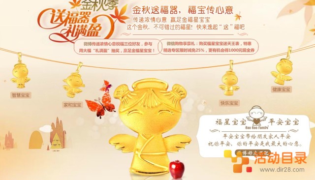 一年好景君须记, 满心的温情,浓情的祝福,福星宝宝为你传心意;周大福携手腾讯微博、微信隆重推出三大主题活动,邀你共享金秋好礼,赢福星宝宝金吊坠。活动目录网站的网友快去参加试试运气吧!