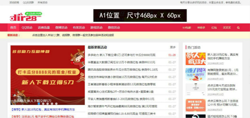 A1位置:全站顶部横幅图片,每个页面均能显示,尺寸宽度428px、高度60px 点此查看所在位置截图