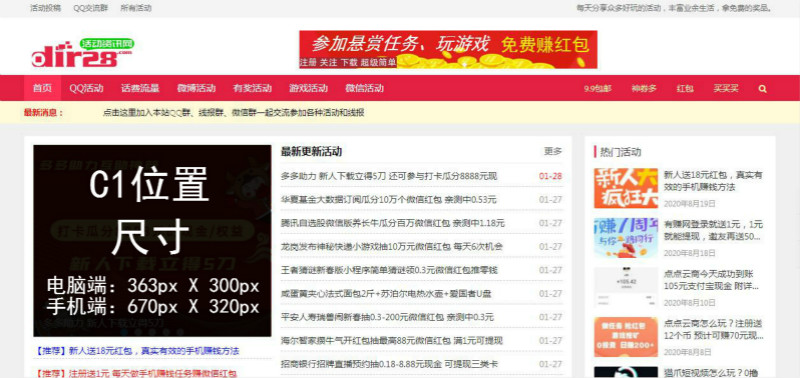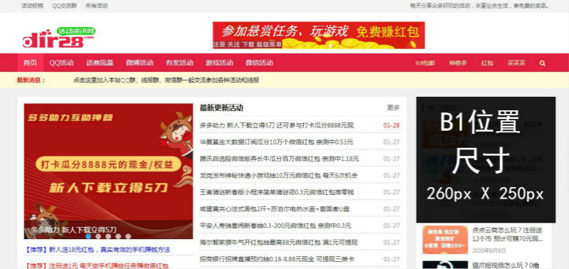 C1位置:首页幻灯图片,首页最新活动旁边展现,尺寸宽度400px、高度260px 点此查看所在位置截图